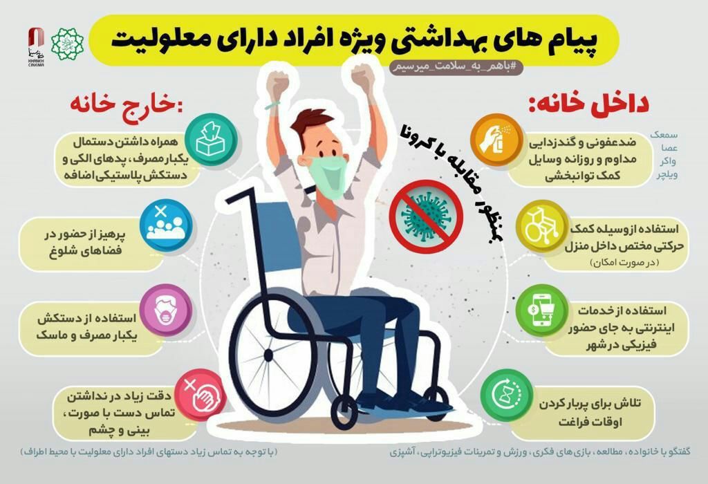 جهت مشاهده و دانلود بر روی مطالب کلیک نمایید : ویروس کرونا جدید (کد 223) 4,042.3 KB کرونا و ایجاد شادی و نشاط در خانه (کد 222) 18,022.7 KB در خانه بمانیم (کد 221) 469.5 KB پیشگیری ازابتلا به کرونا برای کارمندان (کد 220) 164.1 KB پیام های بهداشتی در باره کرونا ویروس ویژه افراد دارای معلولویت (کد 219) 100, KB با همکاری هم زنجیره های انتقال کرونا را قطع کنیم (کد 218) 62.5 KB مقابله با کرونا در آشپزخانه (کد 217) 176, KB راهنمای پیشگیری از کرونا ویروس ویژه کارگران و کارفرمایان (کد 212) 1,012.8 KB مجموعه 19 سرگرمی و بازی کودکان در منزل (کد 211) 1,748.9 KB کتابچه بازی در منزل برای کودکان 10-15 سال در زمان قرنطینه در منزل (کد 210) 1,096.6 KB کتابچه بازی در منزل برای کودکان 6-10 سال در زمان قرنطینه در منزل (کد 209) 978.3 KB کتابچه بازی در منزل برای کودکان زیر 6 سال در زمان قرنطینه در منزل (کد 208) 1,595.3 KB راهنمای مدیریت تغذیه در ویروس کرونا (کد 207) 609.5 KB ساخت ماسک (کد 205) 1,864.9 KB نکات آموزشی پیشگیری از کرونا ویروس برای رانندگان تاکسی ها (کد 204) 241.2 KB نکات آموزشی پیشگیری از کرونا ویروس در مراکزخرید و فروشگاه ها (کد 203) 247.3 KB نکات آموزشی پیشگیری از کرونا ویروس در پمپ بنزین ها (کد 202) 290.7 KB نکات آموزشی پیشگیری از کرونا ویروس برای استفاده از عابر بانک (کد 201) 218.6 KB نکات آموزشی پیشگیری از کرونا ویروس در وسایل شخصی (کد 200) 216.1 KB نکات آموزشی پیشگیری از کرونا ویروس در تاکسی و اتوبوس های داخل شهری (کد 199) 207, KB نکات آموزشی پیشگیری از کرونا ویروس برای ورود و خروج از منزل (کد 198) 403, KB دستورالعمل مهمانی (کد 197) 223.4 KB دستورالعمل مسافرت (کد 196) 291.1 KB نکات آموزشی پیشگیری از کرونا ویروس برای مراقبت از خود (کد 195) 218.5 KB نکات آموزشی پیشگیری از کرونا ویروس در اداره ها (کد 194) 193.9 KB نکات آموزشی محافظت از دیگران در صورت داشتن علائم تب و سرفه (کد 193) 232, KB دستورالعمل غذاخوری (کد 192) 226.8 KB دستورالعمل آرایشگاه (کد 191) 225.9 KB باز تعریف موقت زندگی درباره کرونا (کد 190) 966.3 KB نکات آموزشی پیشگیری از ویروس کرونا در اصناف (کد 186) 207.1 KB چگونه از گسترش کرونا در محیط کار جلوگیری کنیم؟ (کد 185) 943.7 KB توصیه های تغذیه ای برای پیشگیری از بیماری های تنفسی و کرونا (کد 184) 2,486.4 KB نکات آموزشی پیشگیری از ویروس کرونا در غذاخوری ها (کد 183) 226.8 KB با اضطراب ویروس کرونا چه کنیم؟ (کد 182) 352.1 KB پروتکل خرید نان در زمان شیوع بیماری کرونا 5,856.2 KB کرونا ویروس در محیط کار (کد 181) 72.2 KB کرونا ویروس در زنان شیرده (کد 180) 63, KB پروتکل آموزش ورود به خانه و پروتکل خرید در نانوایی (کد 179) 231.5 KB مناطقی از دست ها که در هنگام شستن دست ها خوب شسته نمی شوند (کد 178) 72, KB کرونا ویروس در زنان باردار (کد 175) 61.1 KB مراقبت از بیمار مبتلا به ویروس کرونا در منزل (کد 174) 906.3 KB کرونا ویروس در بیماران قلبی - عروقی (کد 173) 75.9 KB آنچه باید برای مراقبت از خود و خانواده در مقابل ویروس کرونای جدید بدانید (کد 172) 277.4 KB با اضطراب ویروس کرونا چه کنیم؟ (کد 171) 428.8 KB راهنمای بیماران کرونا پس از ترخیص (کد 162) 630.9 KB پرسش و پاسخ های شایع درزمینه بیماری کورونای جدید 2019 (کد 161) 739.2 KB کرونا ویروس در افراد دیابتی (کد 157) 55.6 KB استفاده صحیح از ماسک (کد 149) 120.5 KB توصیه های درمانی در منزل برای مبتلایان به کرونا (کد 147) 101.9 KB راه های پیشگیری از ابتلا به کرونا ویروس در مدارس (کد 145) 715.9 KB دانستنی هایی در مورد کرونا در بارداری و شیردهی (کد 143) 69.4 KB چگونه می توانم اطمینان حاصل کنم که لباس و ملحفه ها، کرونا ویروس جدید را پخش نمی کنند؟ (کد 142) 84.7 KB ویروس کرونای جدید چه علائمی دارد؟ (کد 141) 298.3 KB روش صحیح استفاده از ماسک (کد 140) 81.2 KB کرونا ویروس ، راههای انتقال ، علائم و پیشگیری (کد 139) 114.9 KB شستشوی دست (کد 138) 113.8 KB از کرونا نترسید، مقاومت بدنتان را بالا ببرید(1و2) (کد 137) 103.1 KB در صورت ابتلا به ویروس کرونا جدید چه کار کنیم؟ (کد 136) 80.3 KB در صورت برخورد با کسی که کرونا ویروس دارد چه کار کنیم؟ (کد 135) 67.5 KB اگر در خانواده فردی دچار ویروس کرونا شد چه کنیم؟ (کد 134) 124.8 KB اصول مراقبتی کرونا (کد 133) 161.2 KB توصی